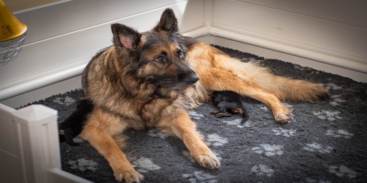 Op woensdag 18 juni zijn de pups van Blake van Chika's Erf en Norah (Cora Betsies Happyhome) geboren. Een geboortetabel volgt nog. 9 pups. 6 reutjes en 3 teefjes. Mooie, sterke pups. Het gaat goed met Norah en haar pups. Norah is inmiddels een ervaren moeder. En weer zo lief en geduldig met haar pups. Prachtig om te zien en wij Genieten weer! De kleuren van de pups zijn zwart/bruin en donker grauw gewolkt met een zandkleurige ondervacht.